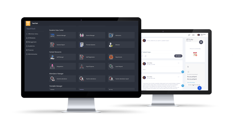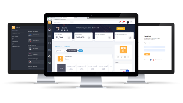 Teach-Tech software offers the most ever user-friendly school management system, with more than 200+ features, including admission & course management, grade books, attendance & leave management, hostel & transport management, e-books & library management, HR management, invoicing, inventory, advanced user management with unlimited user roles, mail & SMS management, Online payments Gateways & SMS gateway, 100+ reports and many more.
